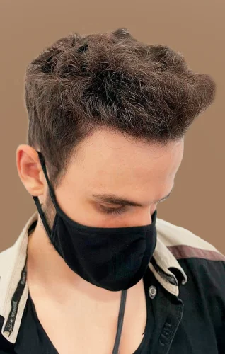 El resultado final en este paciente joven es muy satisfactorio y refleja perfectamente el objetivo del diseño inicial con una línea frontal bien definida y natural, con microirregularidades que imitan el crecimiento original del cabello, evitando cualquier efecto artificial y unas entradas que han sido cerradas de manera armónica, rejuveneciendo el marco facial.