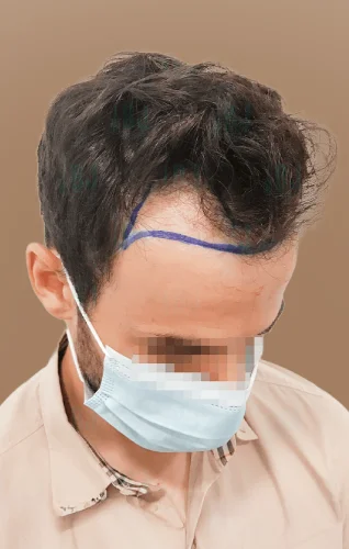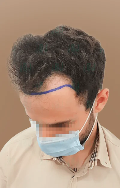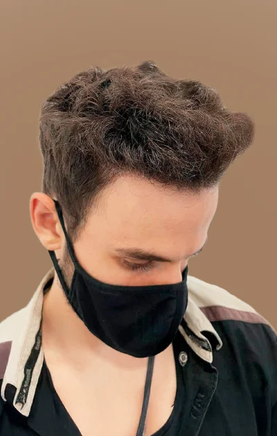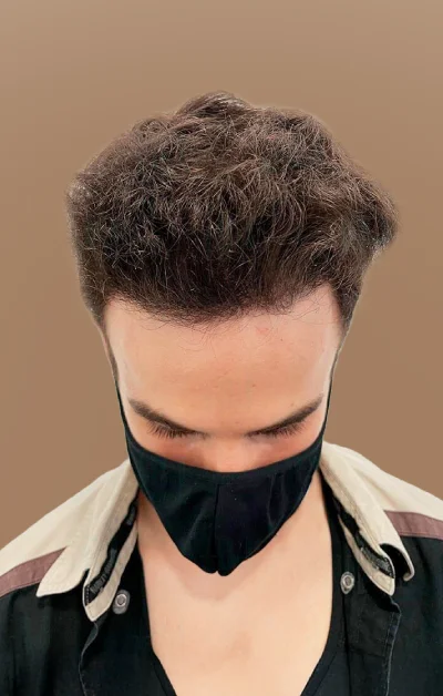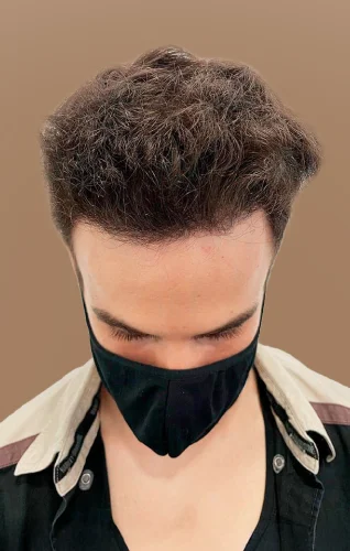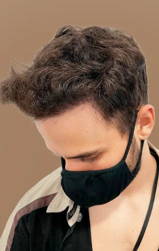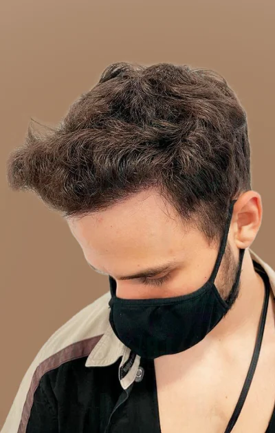 En este caso, el paciente de 24 años presentaba una pérdida marcada en las entradas. El diseño acordado se centró en recuperar el marco facial de manera natural, cerrando las entradas y reforzando la línea frontal sin bajarla en exceso.